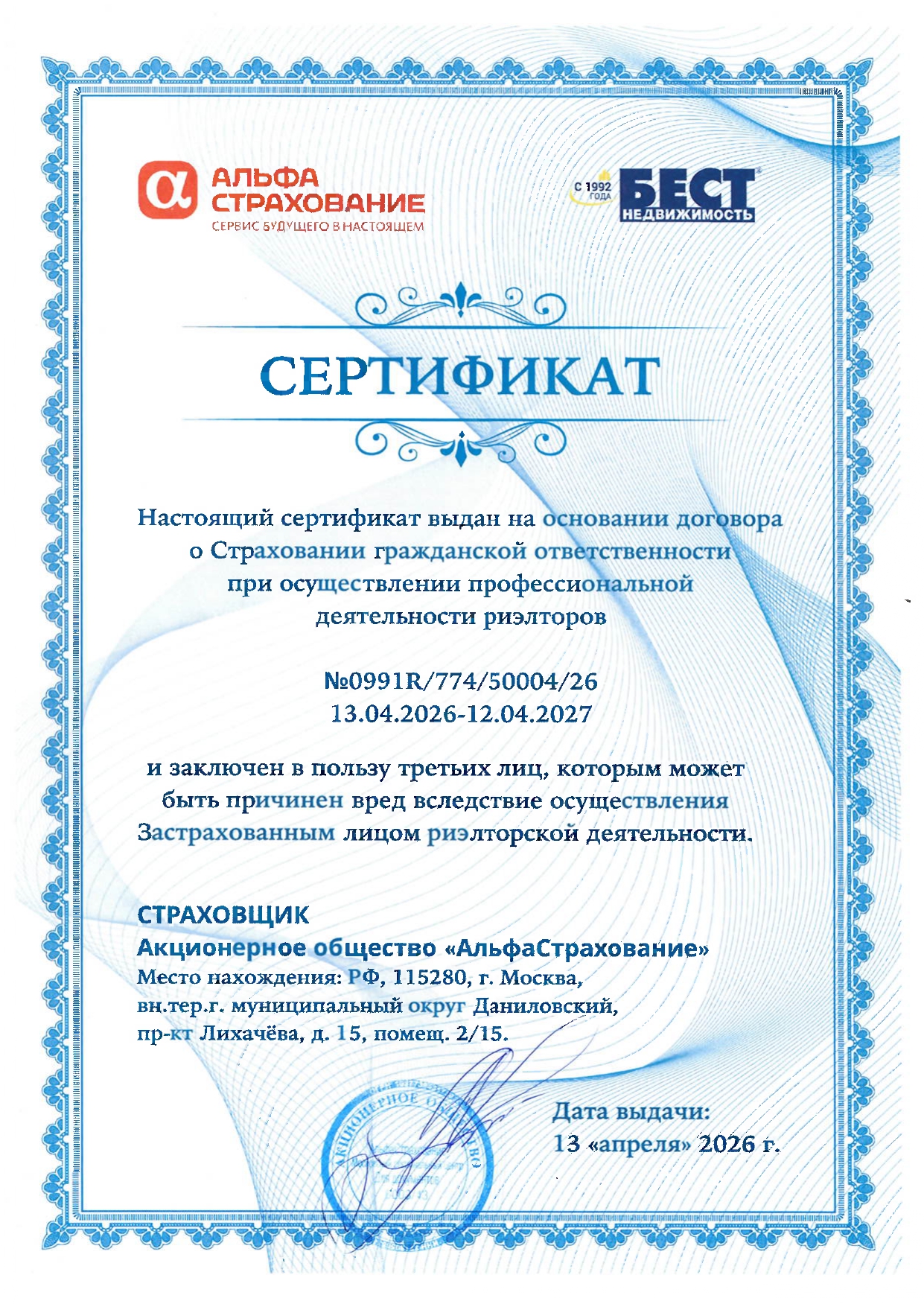 Наше агентство является членом Российской Гильдии Риелторов. По версии международного исследовательского центра MARC, "БЕСТ" входит в пятерку крупнейших риелторских агентств в Москве. Мы опираемся на более чем 25-летний опыт работы и предлагаем клиентам выгодные условия сотрудничества: